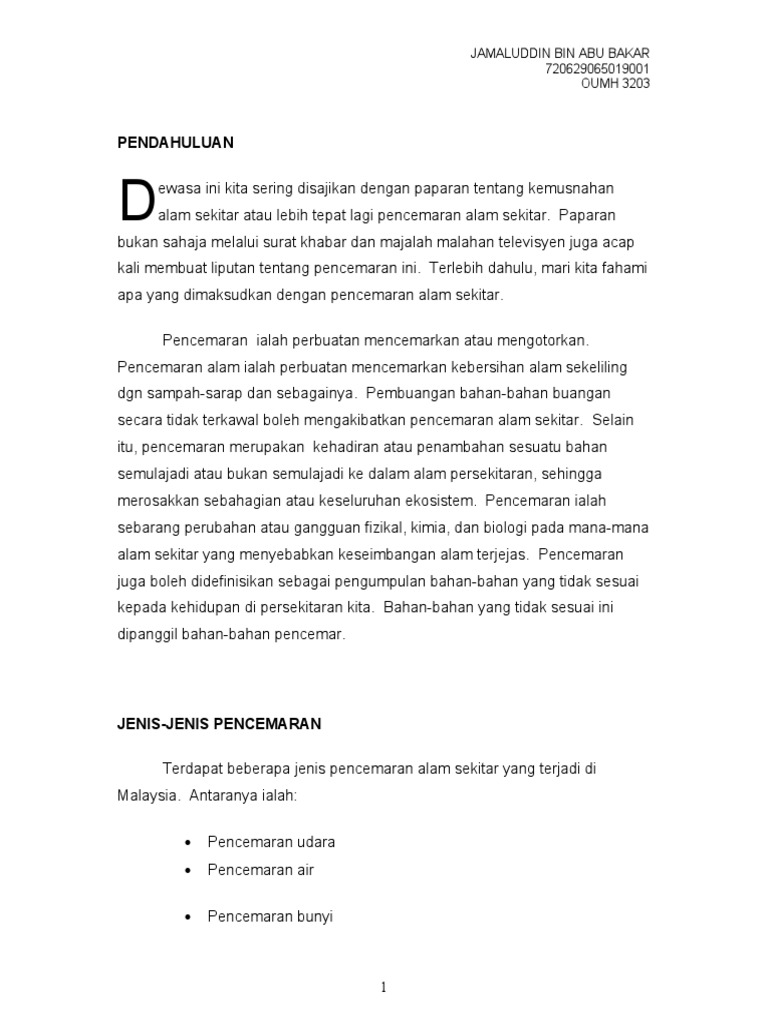 Dalam meniti kerancakan arus pemodenan pada era pascaperindustrian dan pascaglobalisasi yang serba mencabar akal dan minda ini telah membuatkan. Assalamualaikum dan salam sejahtera korang semua. Penggunaan bahan api fosil yang tidak terkawal. Terdapat beberapa sebab terjadinya pencemaran alam sekitar di negara kita. Tanpa kita sedari aktiviti harian kita telahmenyumbang kepada kemusnahan alam sekitar.isi rumah menyumbang kepada pencemaran. 4 pencemaran udara pencemaran udara merupakan satu keadaan yang melibatkan pengenalan sebarang bahan kimia, jirim zarahan atau bahan biologi yang boleh menyebabkan mudarat atau ketidakselesaan kepada manusia atau organisma. Buktinya, para pengkaji menjumpai kesan terbakar di dinding gua tempat manusia tinggal pada zaman dahulu. Disediakan oleh:disediakan oleh:rosdi bin ramli (db100316)saiful shah rizal bin samsudin 9. Pencemaran air adalah salah satu penyebab penyakit kronik. Konsep & takrifan alam sekitar; Timbalan menteri alam sekitar, datuk dr. Akibat daripada pencemaran alam sekitar, kesihatan manusia turut terjejas. Pencemaran alam sekitar terutama berpunca daripada produk berasaskan plastik dikhuatiri meningkat pada kadar yang amat membimbangkan.