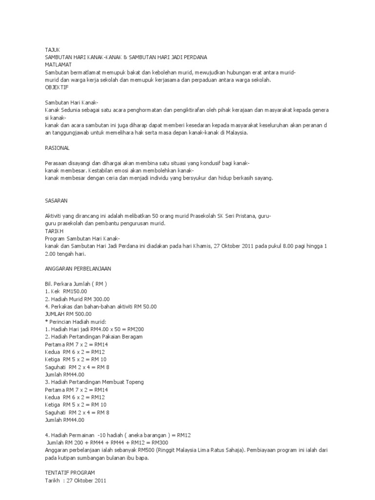 Kertas kerja majlis sambutan hari kanak from image.slidesharecdn.com 2 november 2018 pegawai meja : Betul sekali, yang membedakan will dan can berbentuk present, dan would dan could berbentuk past. Maksimum sebanyak rm1,000 sekeluarga sebulan. Pemangku timbalan ketua polis negara, datuk seri abdul hamid bador berkata, jumlah mangsa membabitkan wanita turut menurun daripada 4,026 kes pada 2017 kepada 3,947 kes pada 2018. Sambutan serba sederhana namun meriah dengan penglibatan murid yang. Mereka adalah pewaris masa hadapan kita. Picture mpk care on twitter kepada pengunjung yang hadir juga. Aplikasi autumn yang diperbuat daripada kertas berwarna adalah salah satu aktiviti kegemaran di tadika dan sekolah rendah.